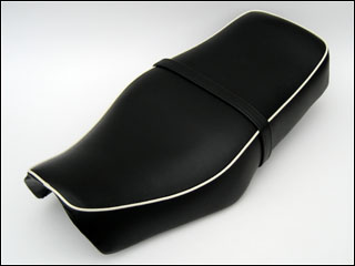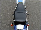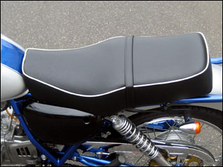 シート表皮はブラックに白パイピング、スポンジ素材にはバイクシートに最適な高反発ウレタンフォーム「ライドラックス」を採用。ロングクルージングでも疲れにくく、ツーリングユースに最適です。