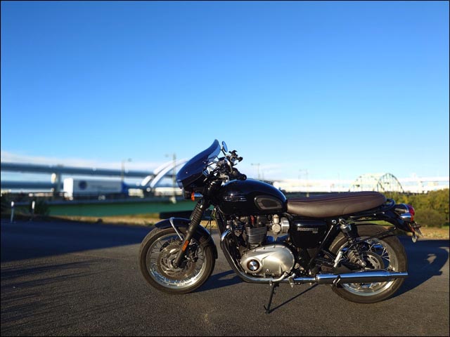 わたしは元々乗っていたW650にも20年間ほどガイラシールドを装着させていただいており、その効果のほどは実際に体感済みではありましたが、いざ、改めてボンネビルに装着してみると、その風防効果の絶大さを改めて体感することができました。