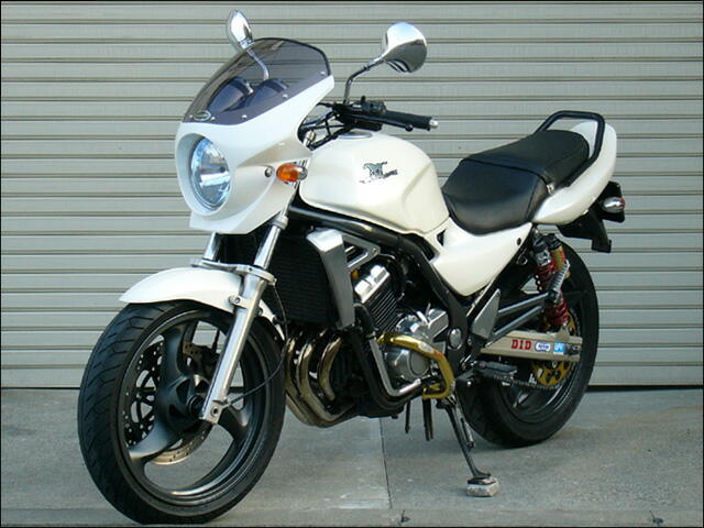 バリオス2に合わせたカットラインを持ち、ノーマルライトにボルトオンで装着可能。ライト左右ラバーマウント、下部リジットマウントの3箇所での確実な固定を実現しています。